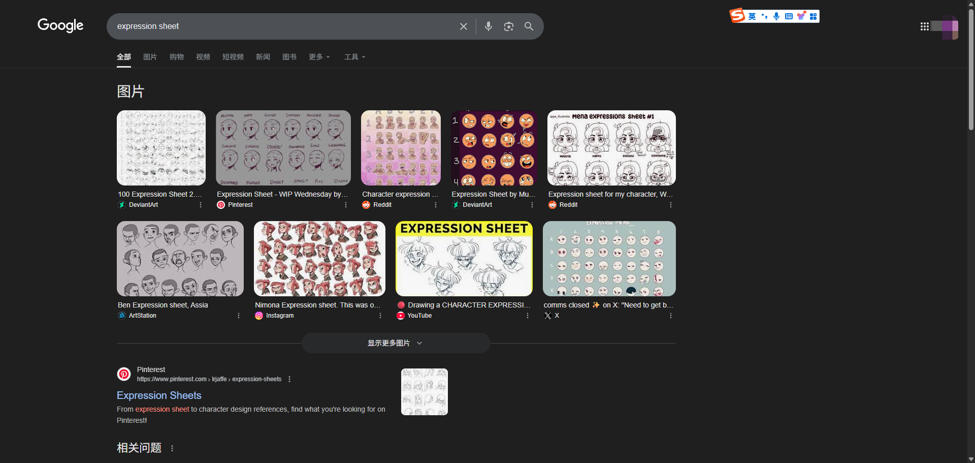 • 寻找一些现成的表情参考图,如搜索关键词:Expression Sheet.