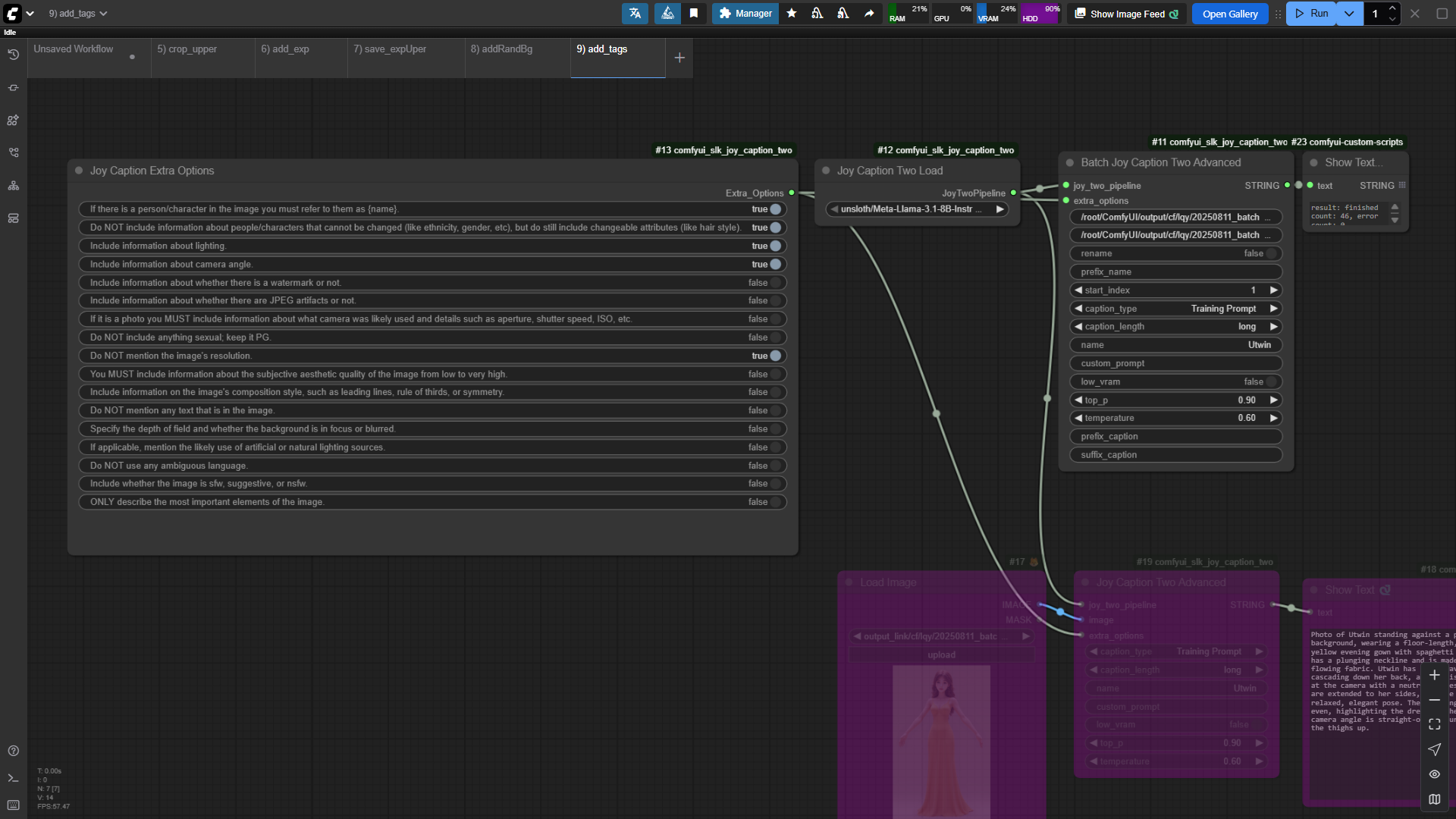 很多模型训练工具都提供了打标功能,如Fluxgym、秋叶模型训练器等,但是都有其缺点,目前采用的是joy caption,注意:触发提示词尽量要用一个不常见的词,实践中用的Utwin其实并不可取。