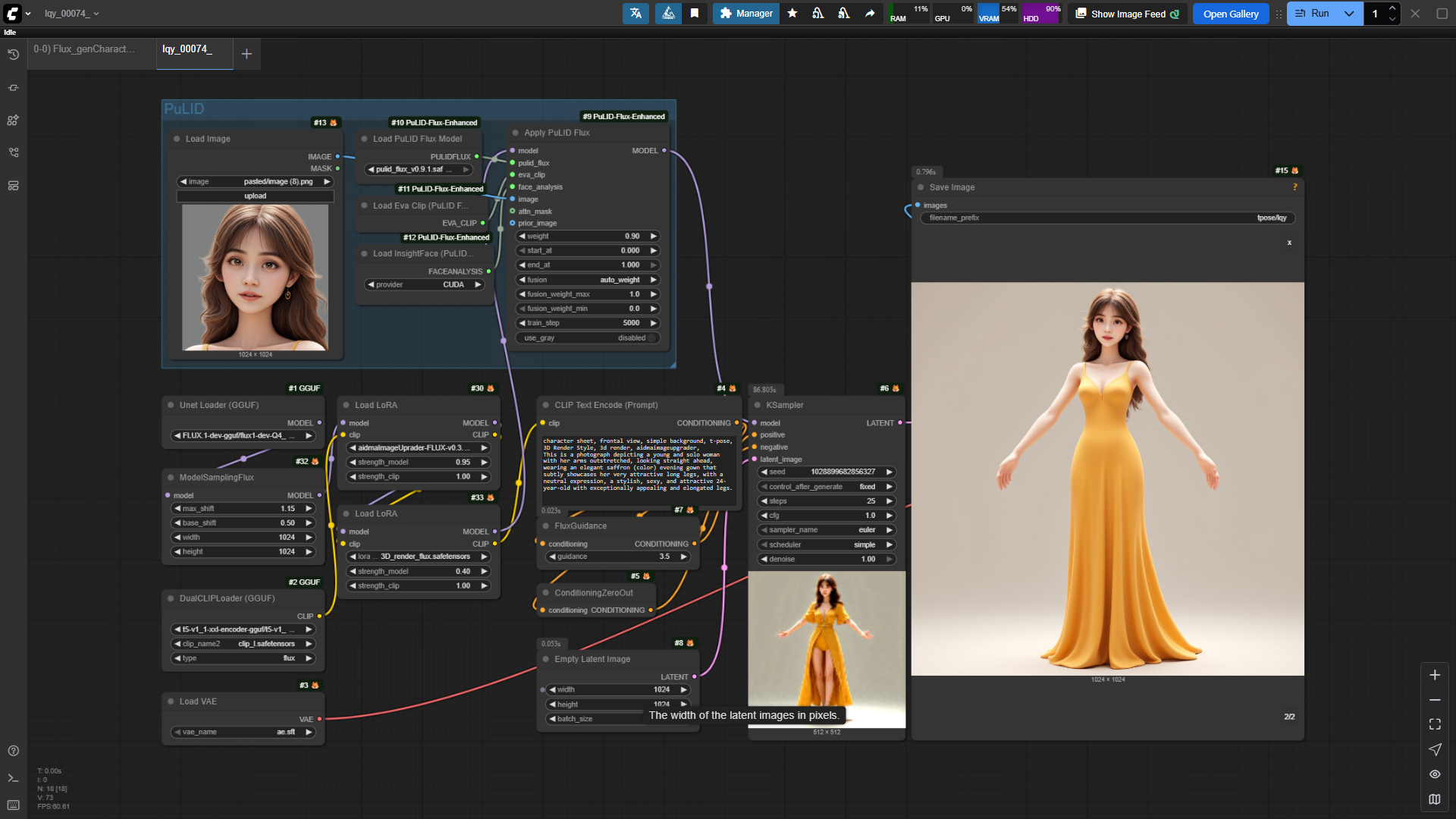 一般来说,获取一个角色要么随机,要么是想这个角色带有某个目标人物的脸部特征。在Flux中,可加入一个PuLID模块,用于提取目标人物的脸部特征。